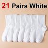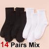 7/14/21 Pairs Women Classic Black And White Solid Color Fashionable Versatile Sweat-Absorbing Soft And Breathable Casual Socks
