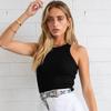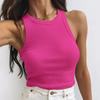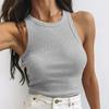 Rippstrick Grün Damen Tanktop Sommer Lässig Basic Skinny Weste Ärmellos Weiß Schulterfrei Sexy Frau Crop Top