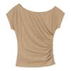 Sommer neues Mode-Designgefühl Nische schräge Schulter freiliegendes Schlüsselbein plissiertes Damen-T-Shirt