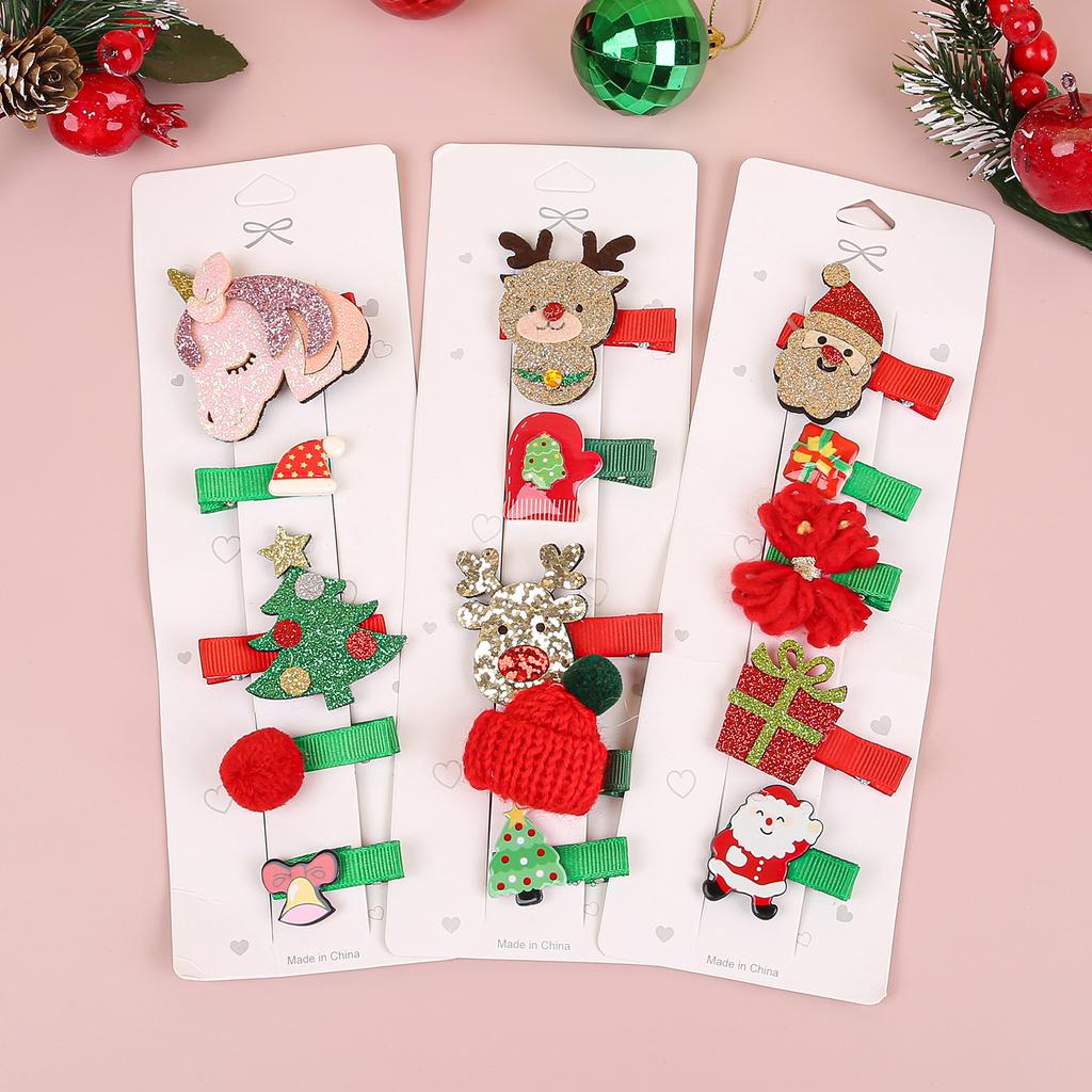 5 Stück/Set Kinder Weihnachten Haarspangen Elch Schneeflocke Haarnadeln Baby Mädchen Haarspangen Clips Weihnachtsfeier Geschenke Haarschmuck