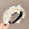 New Korean Big Wide Ruffles Satin Bezel Black Coffee Neutral Solid Color Hairbands for Women Girls Hair Accessories