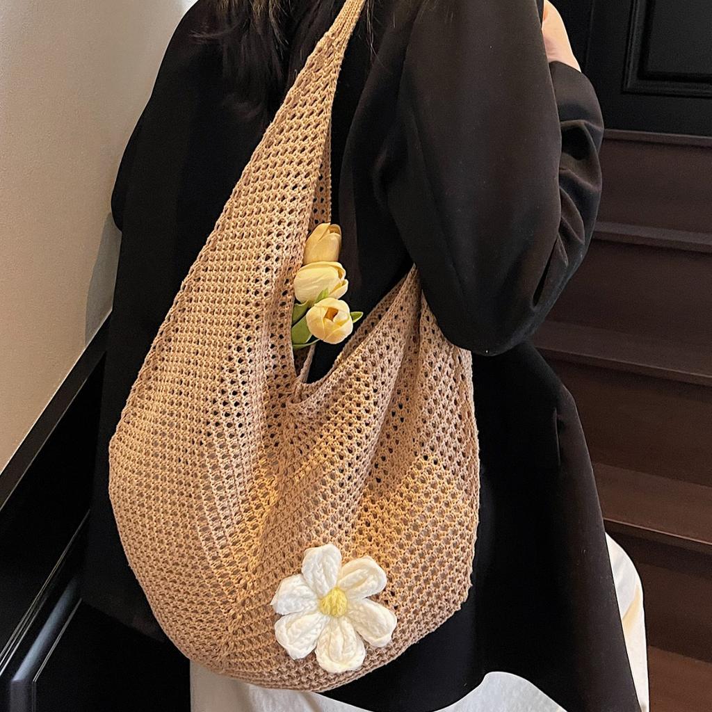 Reisen am Meer Strandtasche Damen Neue hohle gewebte Tasche Große Kapazität Schulter-Tragetasche Leichte Sommer-Strandurlaub-Schultertasche