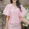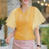ZANZEA Damen Lässig Mesh-Einsatz Rüschenärmel Sommer V-Ausschnitt Bluse