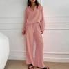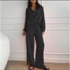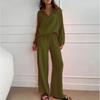 GMXIA Baumwoll- und Leinen-Set, Strickjacke, Langarm-Oberteil, Tasche, Weitbeinige lange Hose, Zweiteiliges Set