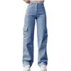 Damen-Cargohose, mittelhoher Bund, Knopfleiste, Reißverschluss, lässige Hose mit mehreren Taschen, gerades Bein, lockere Passform, einfarbig, lange Hose