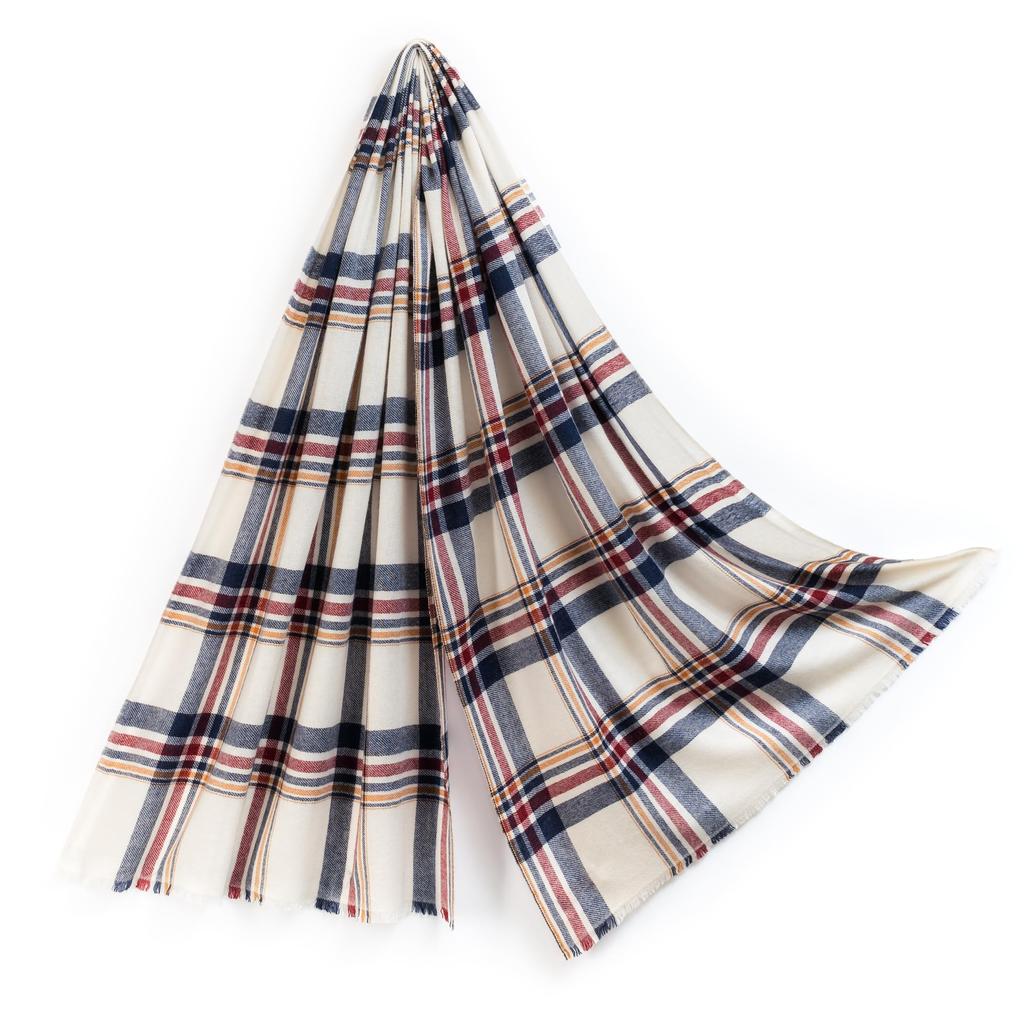 Merino Kaschmir Große Stola Karomuster 70x200cm Zusammensetzung Weiß Geschenkbox enthalten [Pashmina-Kollektion]