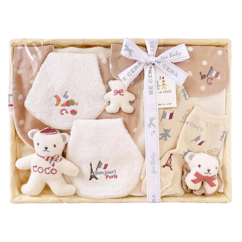 LOLO et COCO Bisera Seisakusho Baby Shower Gift Set Bear Living in Paris Medium Basket Pink Beige Set Made in Japan Baby Gift 7-piece