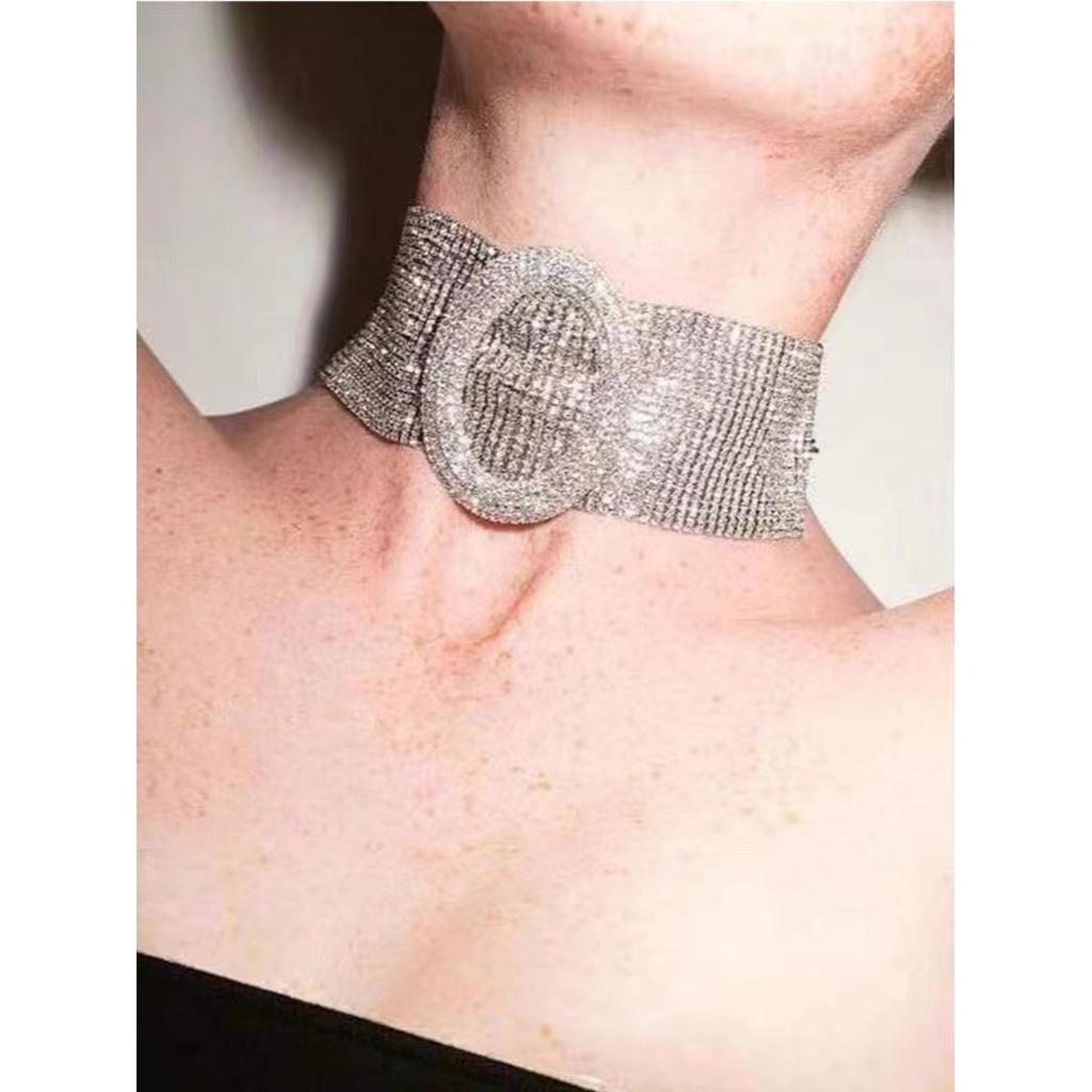 Tooxika Fashionable Oval Belt Buckle Multi-Row Claw Chain Sparkling Diamonds Necklace Celebrity Style Necklace Collar Chain
