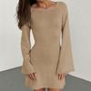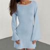 Neckholder Rundhalsbluse Einfarbig Gestrickt Ausgestellter Ärmel Strandkleid