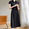 Acetat-Satin-Polokleid für Damen im Sommer Neues Licht Luxus Midilanges Rock Taillenbetontes Langes Kleid
