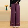 Retro Chinesischer Stil Lockere Bestickte Weitbeinige Hose für Damen Hohe Taille Freizeithose Gerades Bein Hose für Damen