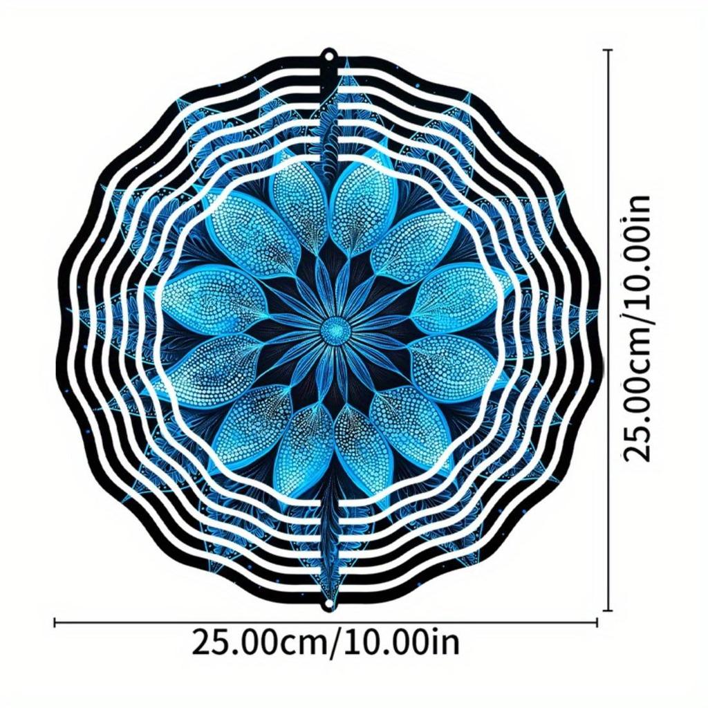 25,4 cm Mandala Blume Metall Windspiel - Langlebiger Hängespiral mit blauem & goldenem Design für Innen-/Außen-Garten- und Terrassendekoration