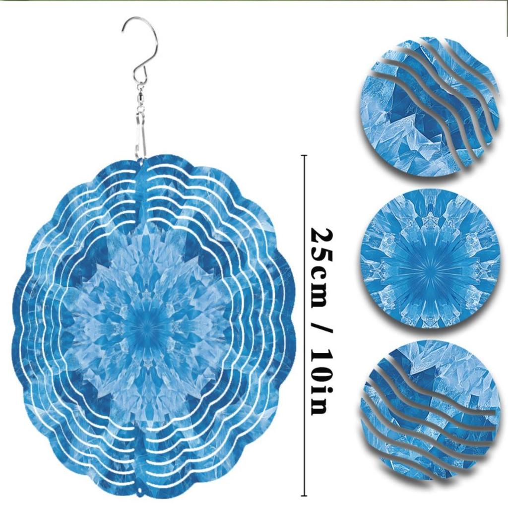 Blue White Metal Wind Spinner with Hanging Chain 2D Garden Art Sculpture for Outdoor Yard Patio Decor All Season Windmill Spinner