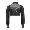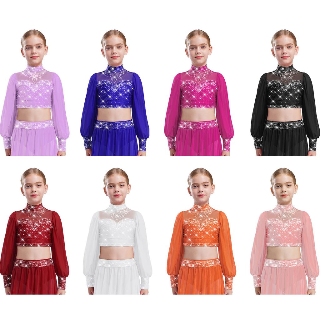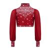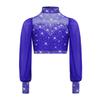 Mädchen Mesh Tanztop Langarm Stehkragen Ausschnitt Rücken Strass Crop Top für Lyrische Ballett Aufführung