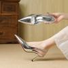 Silberne spitze Strass-Rückseite leere hohe Absätze Frühling und Sommer neue Taschenkopf dünner Absatz Kette sexy vielseitige Damen-Sandalen