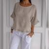 Summer Women Short Sleeve Neck Fashion Blouse Elegant Loose Solid Color Loose Shirt Office Casual Simple Female Tops Basic Women Clothing