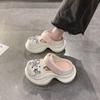 Frühling und Sommer 2025 neue Strass-Erhöhung Lochschuhe Damen Tide rutschfeste dicke Sohle Zwei-Wege-Taschenkopf-Slipper Damenschuhe