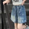 Summer Girls' Denim Shorts Cropped Pants Work Pants Versatile Jean Wide Leg Trendy Versatile Loose Pants for Children