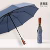 Reflektierender Streifen hochdichtes Gewebe automatischer 10-Speichen-Mattschirm mit Holzgriff dreifach faltbarer Schirm Business einfacher Schirm