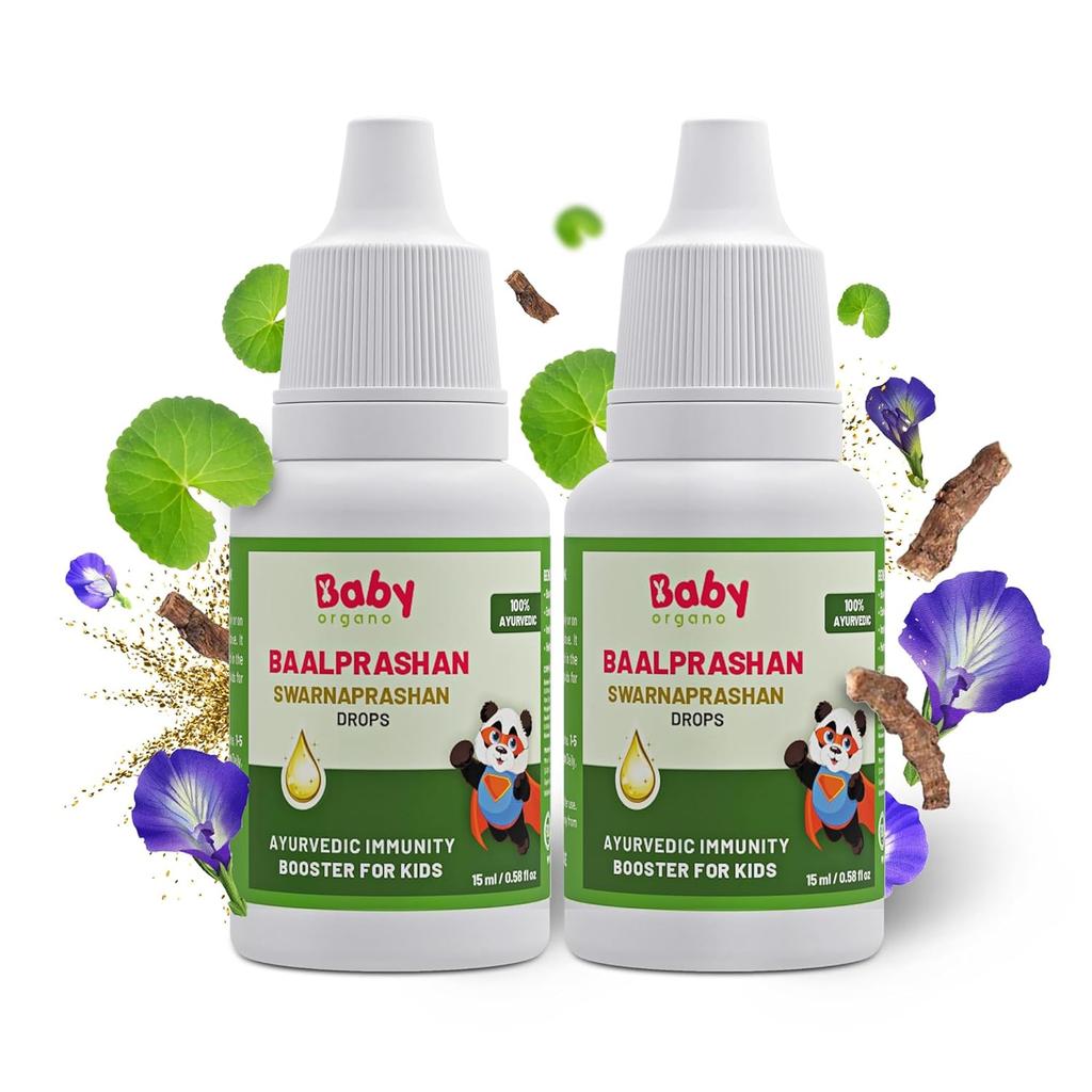 Babyorgano Swarnaprashan Tropfen für Kinder - Suvarnprashan Immunstärker Angereichert, Gesundes Wachstum & Stärke - 15ml, Alter 0-15 Jahre (2er-Pack)