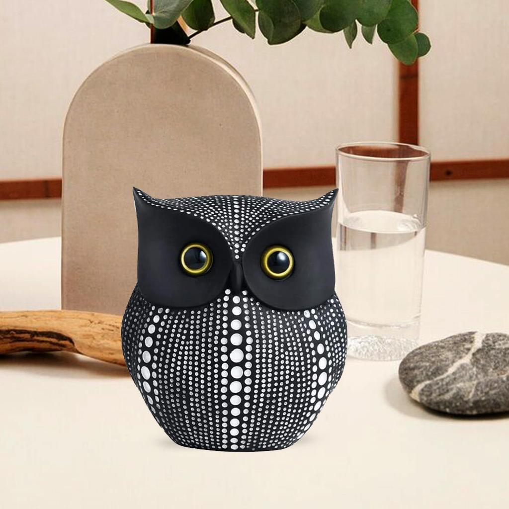 Moderne Edle Glückliche Eule Kunstharz Figur Prunkstück (1er-Pack, Schwarz)