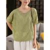 Dimanaf 2025 Neues Sommer O-Ausschnitt Spitzenhemd Damen Bluse Kurzarm Tops T-Shirts Lässig Locker Grün T-Shirts