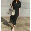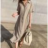 Mode Sommer Locker Kurzärmeliges Hemdkleid Einfach Elegant Büro Einreihig A-Linie Party Lässig Schlicht Lange Kleider Damen Einfarbig Kleidung