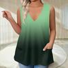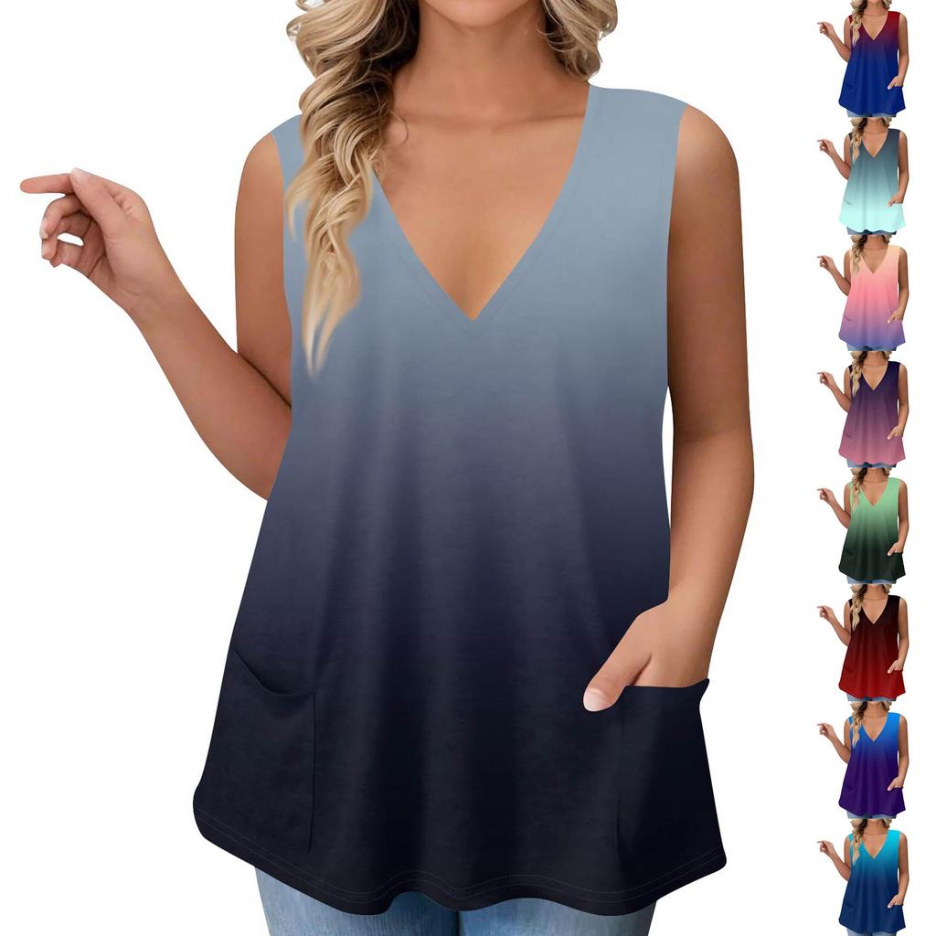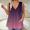 Women's V-neck T-shirt Vest Loose With Pockets T-shirt Gradient Colour Printed Bottom Shirt
