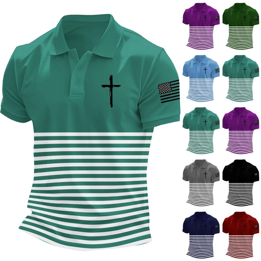 Modisches Herren-Freizeit-Oberteil mit Unabhängigkeitstag-Print am Hals und kurzen Ärmeln