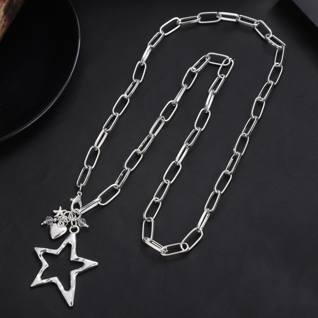 Unregelmäßiger Pentagramm-Legierungsanhänger, einfache kleine frische Stern-Damenpulloverkette
