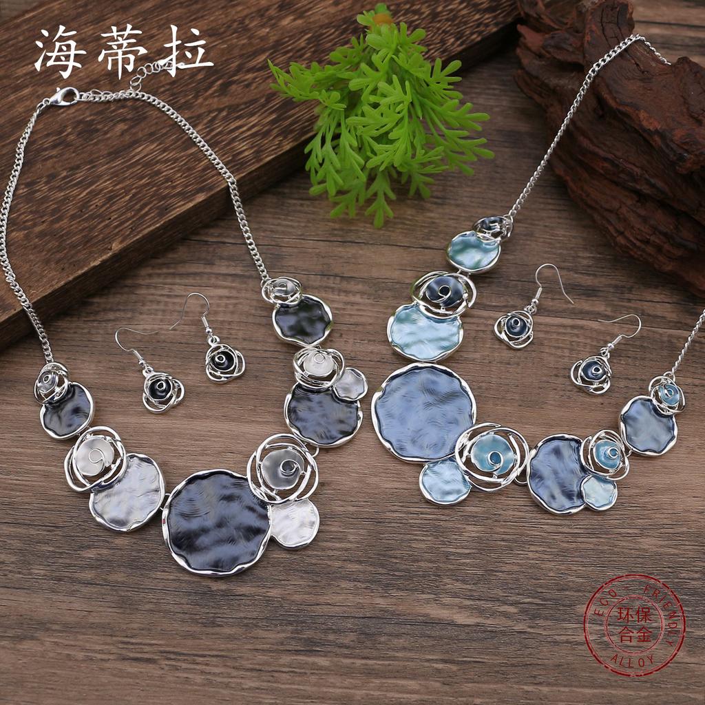 Emaille Rosen Ohrringe Halskette Set, Damen Valentinstag Premium Rosen Halskette