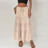 Damen Baumwollrock Hohe Taille Elastischer Bindegürtel Großer Schwingrock Europäischer Und Amerikanischer Lockerer Gespleißter Langer Rock Für Damen