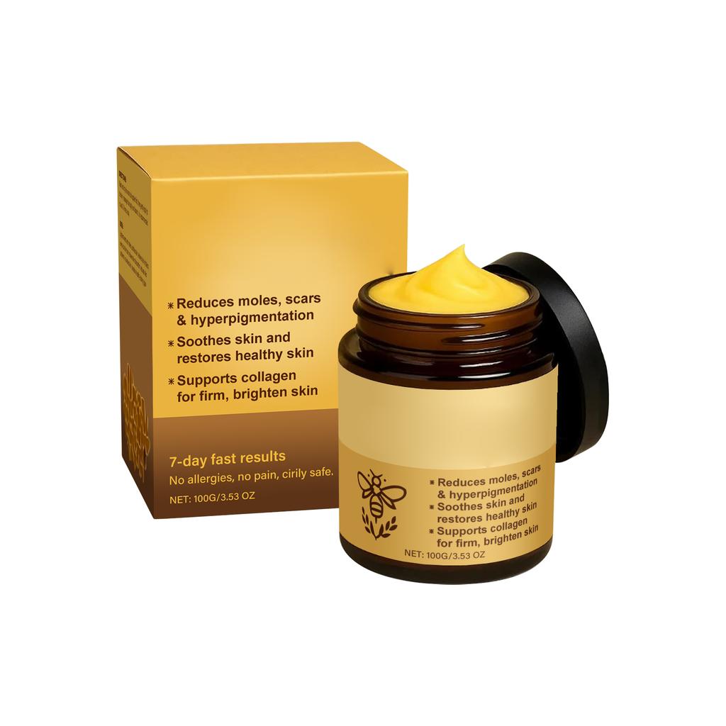 Bienenhautcreme hellt Pigmentierung auf, strafft, spendet Feuchtigkeit und lässt den Teint strahlen.. Hautcreme