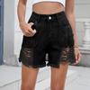 Damen Modische Sexy Einfarbig Gewaschene Denim Fransen Shorts