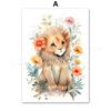 Watercolor Animals Wildflower Lion Rabbit Bear Panda Cow Flamingo Posters Of Wall Art Canvas Prints Picture Baby Kids Room Decor
