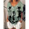 Katzen-Print Kurzarm-T-Shirt, Casual-Oberteil für Frühling & Sommer, Damenbekleidung