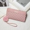 Damen Lang Doppelschichtig Colorblocking Geldbörse Sommer Neu Personalisiert Haarball Multi-Karten Clutch