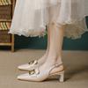 Viereckiger Kopf High Heels mit Temperament Dicke Ferse Einzelne Schuhe Neue Ledertasche Kopf Leere Sandalen
