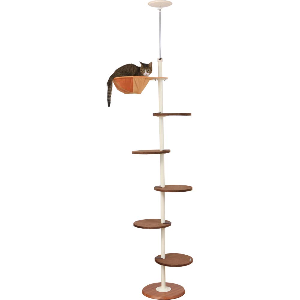Iris Plaza Cat Step Fluffy Cat Brown Natural Tower, Tension, Hammock, Customization, Material, Pole, 1) (Circular Shelf)