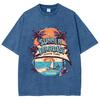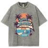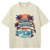 American Vintage Kokospalmenstrand-Print Damen T-Shirt Unisex Übergroß Locker Waschung Kurzarm Basic Oberteil T-Shirt