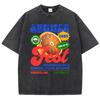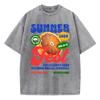 Baumwolle Damen Gewaschene T-Shirts Sommer Frisches Orange Bedruckte T-Shirts Bequemer Rundhalsausschnitt Übergroße Oberteile Damenbekleidung