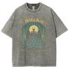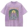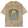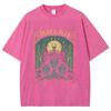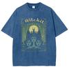 Halloween Hexen Print Damen T-Shirt Übergroß Rundhals Washed Tees Damenbekleidung Nischendesign Vintage Kurzarm
