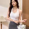 Damen gekämmte Baumwolle Hängender Nacken Neckholder Weste Sommer Neu High-Waist Kurz Sexy Hot Girl Ärmellose Tops