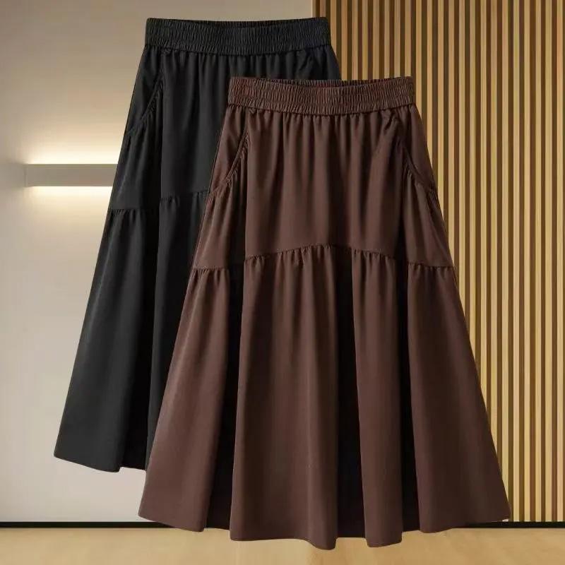 Rock Damen Sommer Lässig Vielseitig Elastisch Hohe Taille Locker Bustierrock Übergröße Dehnbar Schlank Einfarbig Kleider