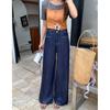 Retro Lockere Weitbeinjeans für Damen mit Hoher Taille Wischen Boden Damit Sie Schlankmachend und Hängend Aussehen Dunkelblau Gerade Bein Neue Hose
