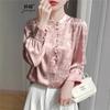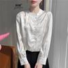 Chinesisches Satin-Jacquard-Seidenhemd für Damen Frühling Sommer Neu Rundhals Langarm Oberteil Bluse Stilvolles und bequemes Hemd