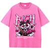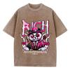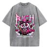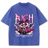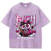 Baumwolle Damen Acid Wash T-Shirts Reichhaltige Cartoons Panda Druck Tees Übergroß Distressed O-Ausschnitt Kurzarm Kleidung