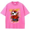 Damen Gewaschene T-Shirts Kung Fu Panda Bedruckte T-Shirts Baumwolle Rundhals Übergröße Tees Vintage Street Damenkleidung