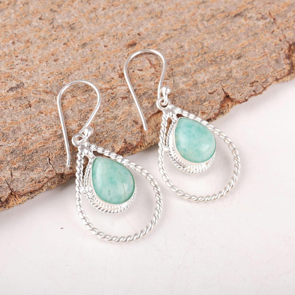 Amazonit Schmuck, 925 Sterlingsilber Ohrringe, Handgefertigte Wunderschöne Ohrringe, Ausgleichender Edelsteinschmuck für Verlobungsgeschenk