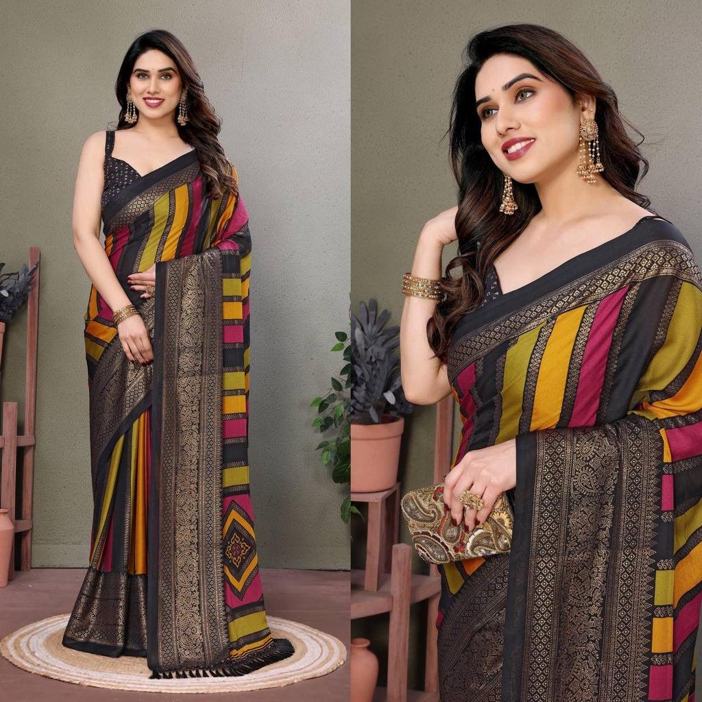 Indischer Designer Helle Moos Seide Sari Partykleidung Bollywood Gedruckter Ethnischer Sari Sari